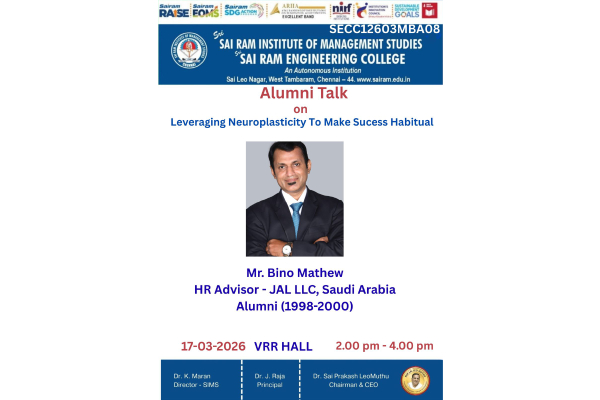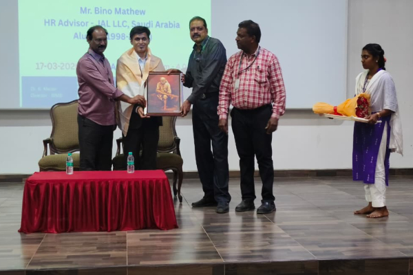 SIMS organized Alumni Guest Lecture on 18.03.26 Mr.Binu Mathew HR Advisor JAL LLC- Saudi Arabia Addressed the Students.