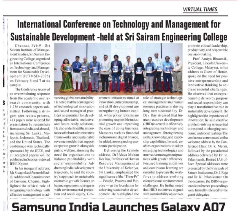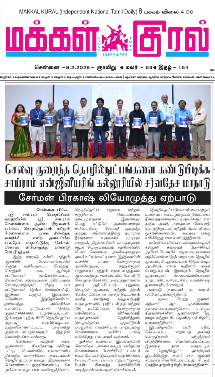 SIMS organized the National Level Management Case Conference Conference on 04.04.24. The News article was Published in Trinity NewsPaper and makkal kural Tamil News Daily.